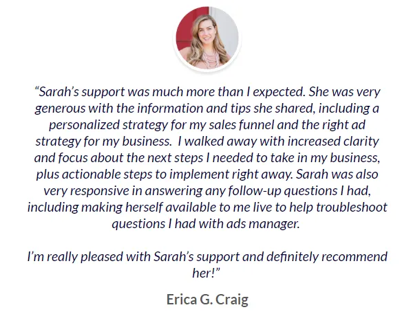 ""Samantha is worth every penny and more. I've grown my list by 7000, she's helped me hone my funnel, created an evergreen webinar that's making me money. I can't recommend her enough. I'm thrilled with the results."